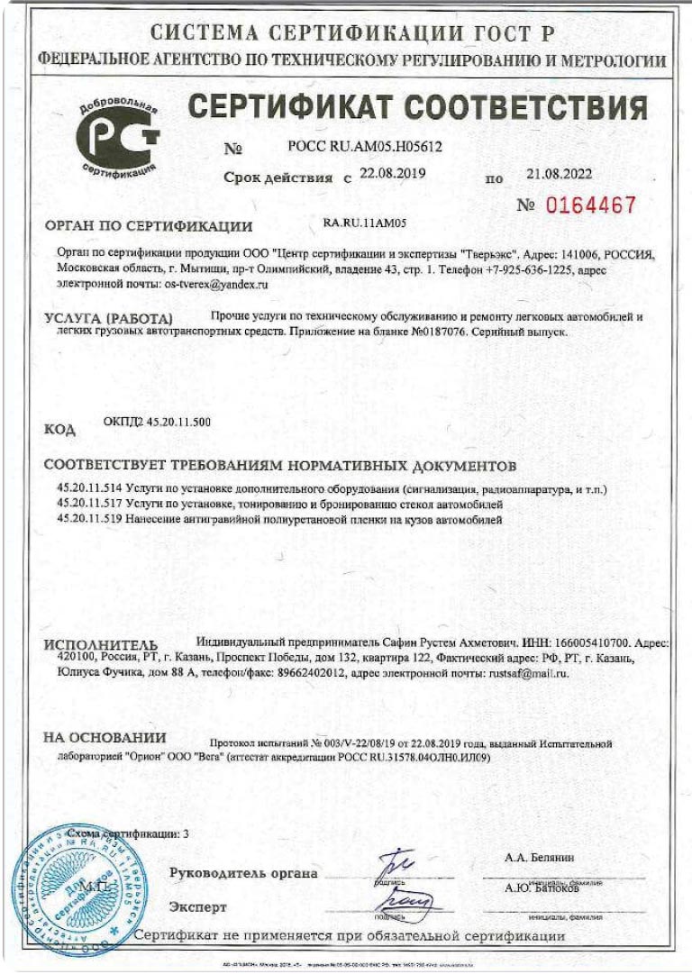 С 22.08.2019 года наша деятельность полностью соответствует требованиям качества. Свидетельство № 0164467